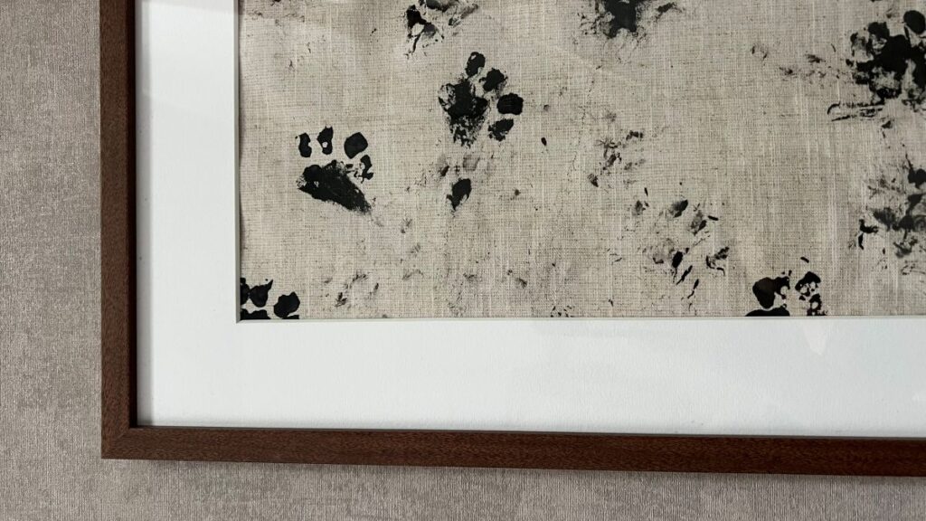 Het plan was om haar pootjes te dippen, snackje erbij en hopen dat mijn huisdier er net zo veel zin in heeft als ik. Met elke stap verschenen er afdrukjes op het doek. Soms keurig rond, soms een beetje uitgesmeerd. Het voelt alsof er een stukje van haar karakter in het kunstwerk is beland. Ben je klaar? Was de pootjes zo snel mogelijk schoon (met beloning natuurlijk, want zonder gaat er niemand vrijwillig in bad) en laat je doek drogen. Voor een finishing touch kun je nog een laagje vernis aanbrengen, zodat de pootafdrukken nóg mooier blijven.