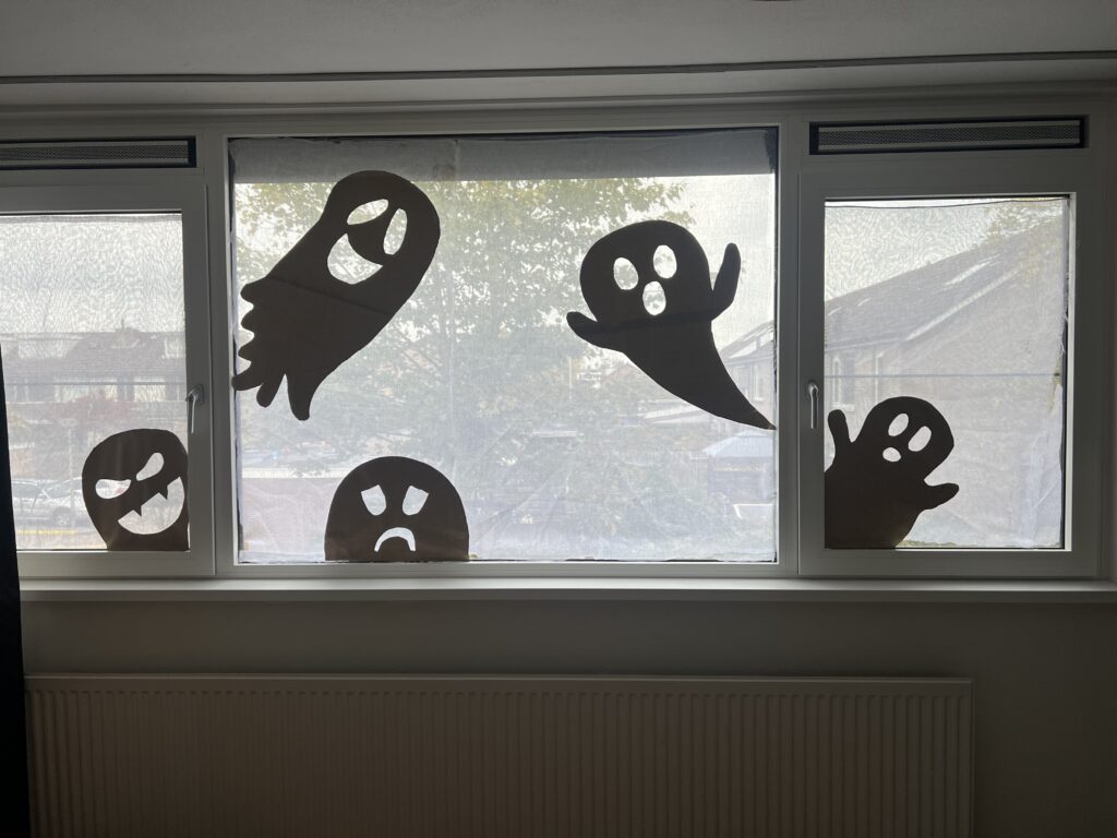 Overdag lijkt het hier allemaal heel normaal. Gewoon een huis. Niks geks aan. Maar… 31 oktober komt dichterbij. En zodra de zon ondergaat, verdwijnt de onschuld. Dan komen de spoken tevoorschijn. Tenminste, bij ons wel. Helaas is Halloween in ons dorp nog niet echt a thing. Bij de Intratuin staat een zielig plankje met wat pompoenen en plastic spinnen, en in de winkels moet je geluk hebben als je íéts van Halloween vindt. Maar goed, daar laat ik mij niet door tegenhouden. Elk jaar breid ik m’n collectie een beetje uit, en dit jaar kwam er iets nieuws bij: deze Halloween DIY raamdecoratie! Kidsproof voor de kindjes die langskomen, maar nét spooky genoeg voor wat extra sfeer. En het mooiste? Je maakt het in no time zelf. Lees hieronder hoe.