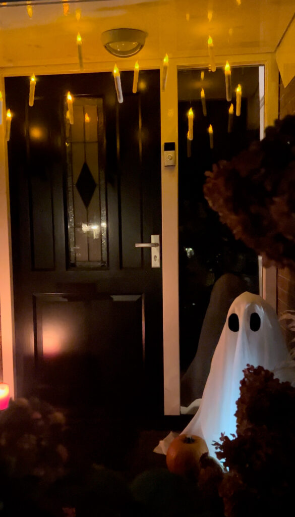 - En voor de finishing touch: speel met de hoogte van de kaarsen om een speelse, ‘zwevende’ look te creëren. En voilà, je voordeur is klaar voor een mysterieuze Halloween, vol magie!