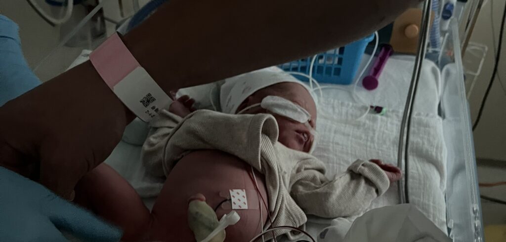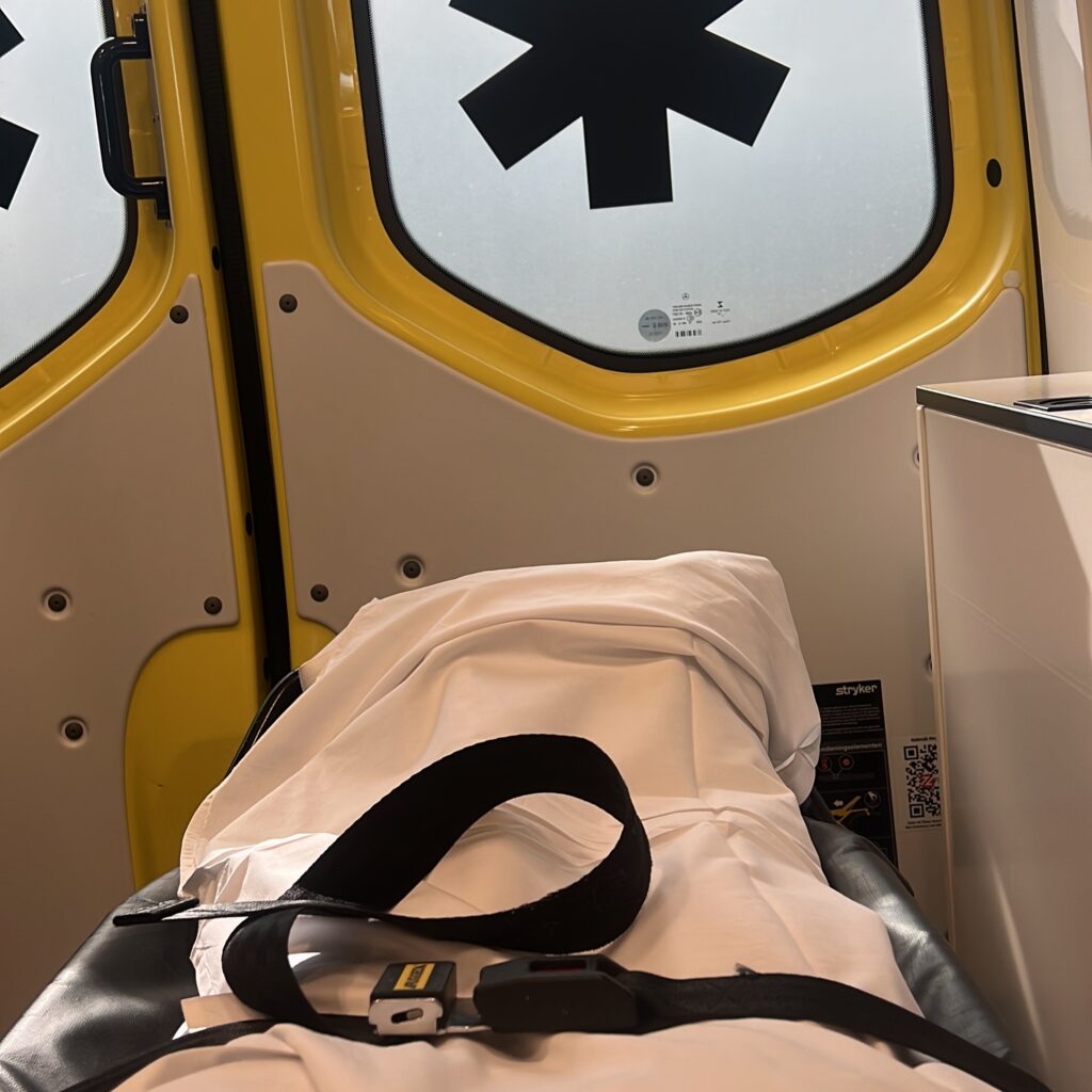 We zijn bijna bij het ziekenhuis in Breda als ik iets voel. Lichte menstruatiekrampen. Oh nee, voel ik dat nou echt? Ik onderbreek voorzichtig het gezellige gesprek met de ambulanceverpleegkundige. “Eh… ik denk dat ik lichte krampen voel.” zeg ik. “Goed dat je het aangeeft,” zegt ze, terwijl ze het doorgeeft aan Amphia. Aan de andere kant van de lijn wordt er direct een bevalkamer klaargemaakt.